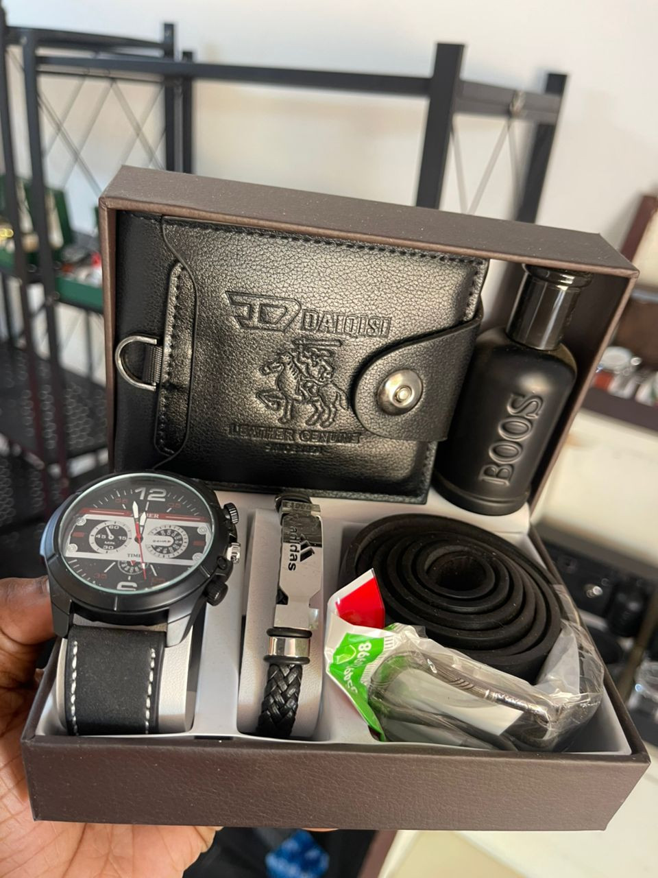 Offrez le cadeau parfait pour lui avec ce coffret élégant et complet. Il contient : une montre raffinée, un bracelet tendance, une ceinture chic, un porte-monnaie pratique, un parfum séduisant, le tout présenté dans une boîte soignée. Idéal pour toutes les occasions : anniversaires, fêtes ou simplement pour faire plaisir. Disponible dès maintenant au Togo.
