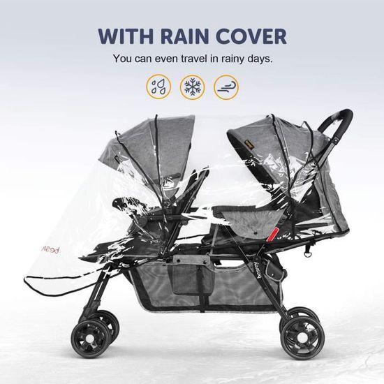 • Capuche anti-pluie / housse anti-poussière incluse pour protéger bébé / enfants de la pluie, de la neige, du vent et pour garder les poussettes jumelles propres de la poussière et de l'humidité