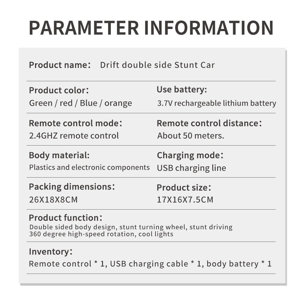 Transfrontalier spécialement pour la voiture cascadeuse double face Rotation à 360 degrés et éclairage de voiture à grande vitesse pour enfants jouet de voiture télécommandé
