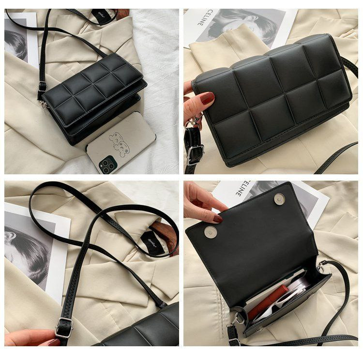 sac version coréenne couleur unie indentation petit sac carré boucle magnétique épaule sac de messager décontracté