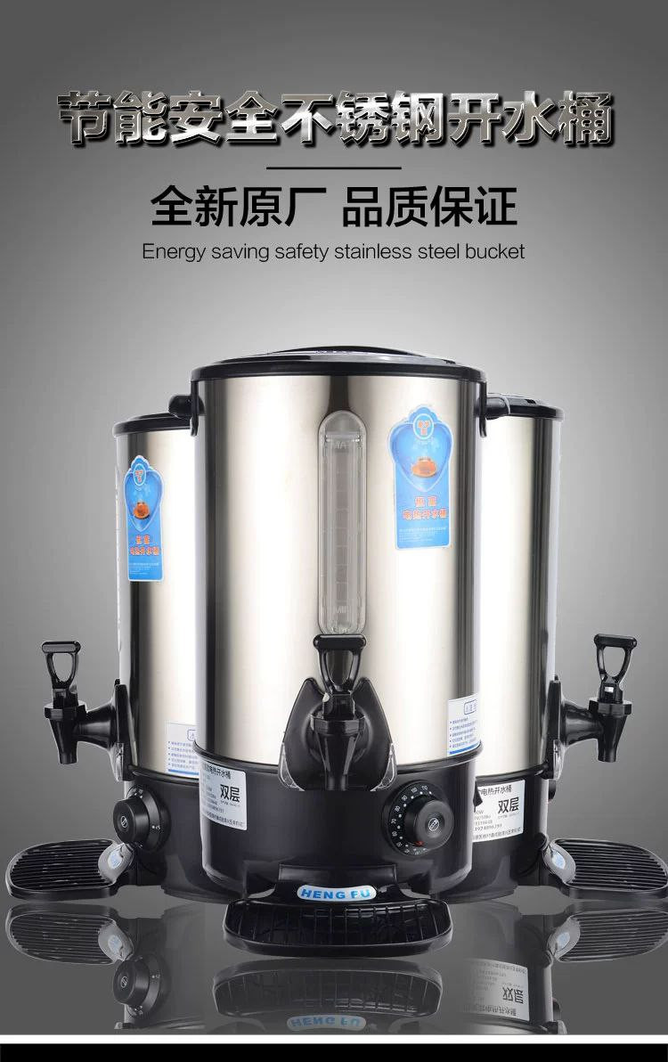Seau d'eau bouillante Hengfu double couche 304 bouteille d'eau bouillante commerciale seau d'isolation de thé au lait en acier inoxydable seau à thé noir chaudière à eau