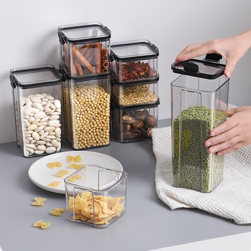 0.7L - Boîte de rangement en plastique scellée transparente carrée épaissie - boîte de stockage de fruits secs et de céréales - boîte de nourriture en plastique réservoir de stockage de thé et de céréales diverses