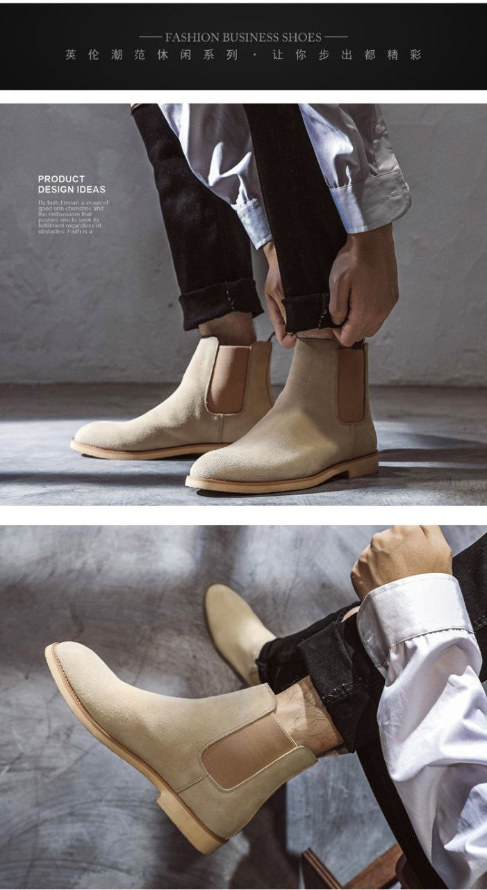 Bottes Chelsea à bout pointu, bottes Martin pour hommes, bottes en cuir véritable de style britannique de très grande taille prête à l'emploi