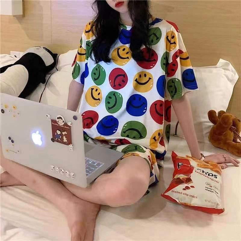 Pyjama pour femme, nouveau short d'été à manches courtes pour femmes mignon décontracté grande taille ensemble de vêtements de maison