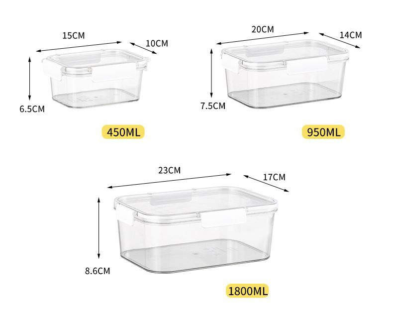 Bac à légumes en plastique de qualité alimentaire pour réfrigérateur grande capacité boîte à lunch rectangulaire pour fruits stockage boîte scellée transparente