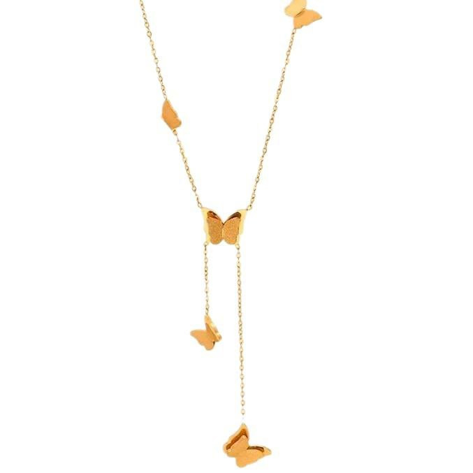 Collier à cinq papillons en or 18 carats pour femmes, nouveau style, ne se décolore pas, tendance, célébrité sur Internet, collier design de style froid, luxe léger