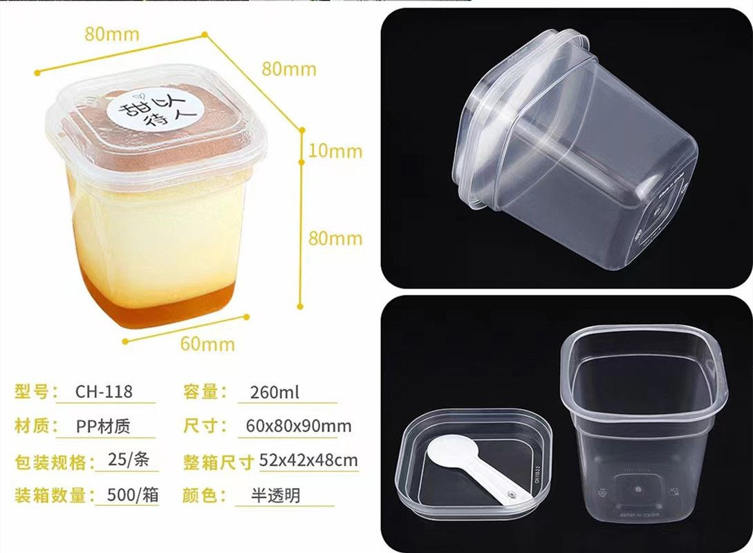 Tasse de gelée de lait de coco, tasse de pudding résistante aux hautes températures, tasse de gelée de noix de coco, tasse de yaourt au lait double peau, boîte d'emballage jetable avec couvercle 260ml