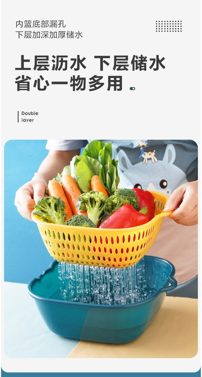 Panier de vidange d'évier de légumes à double couche, panier de vidange de lavage de fruits de cuisine, artefact de fuite, panier de lavage de légumes Chuyi en six pièces