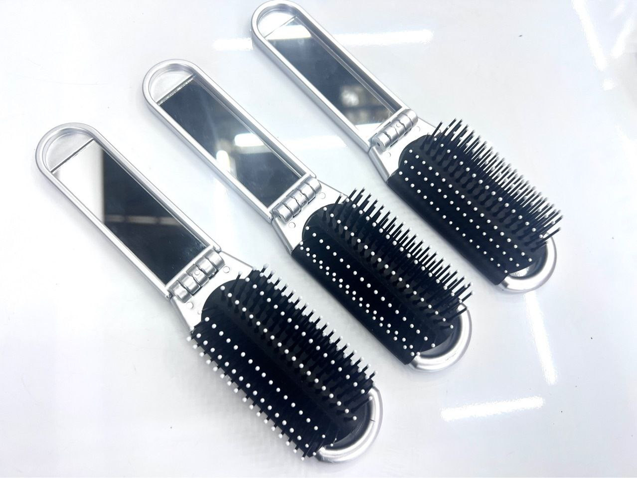 Peinture métallique argentée peigne miroir pliant peigne de poche peigne de massage peigne de lissage des cheveux en plastique