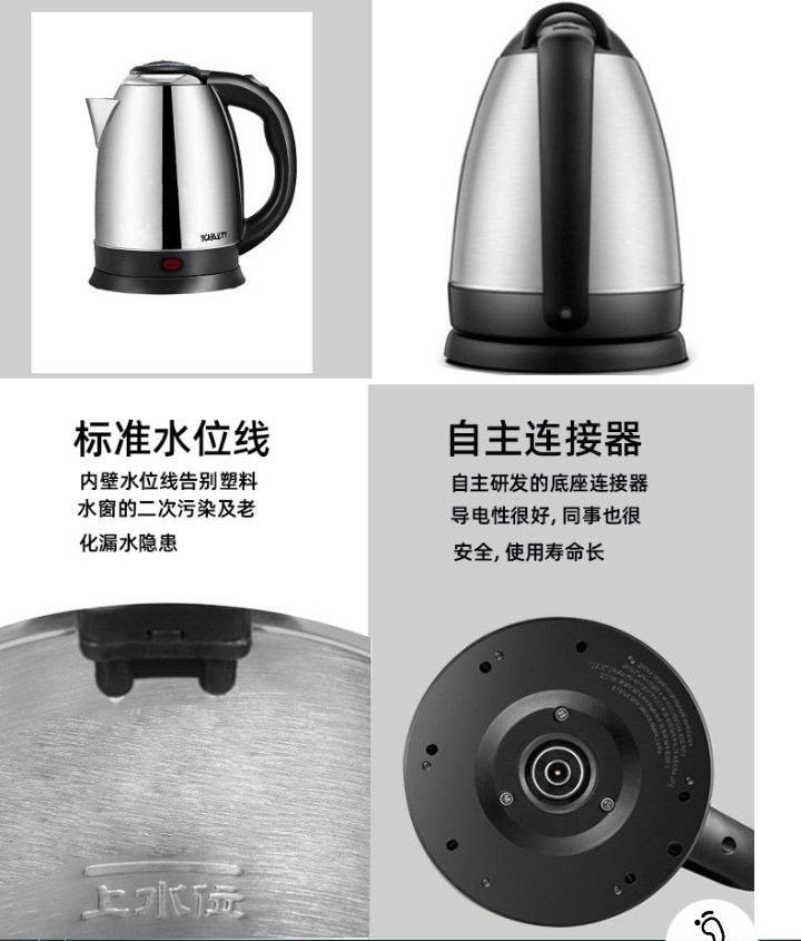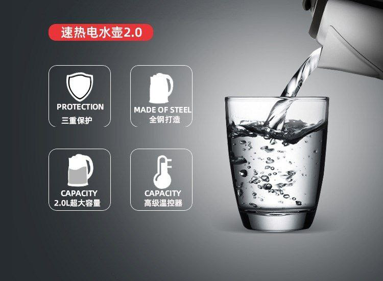 Bouilloires électriques domestiques en acier inoxydable à coupure automatique 2L