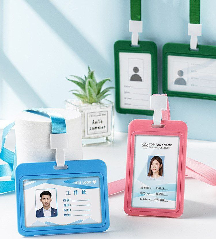 Film transparent double face badge de travail fixe porte-carte de conférence carte de travail à rabat carte de poitrine avec lanière