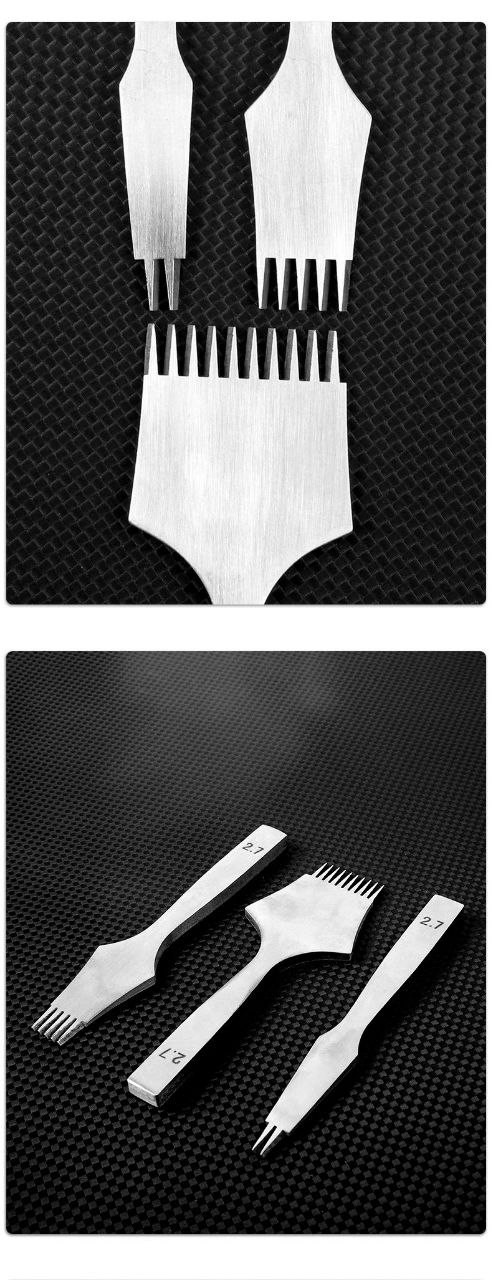 Nouveau ensemble de 3pcs de côtelettes plates obliques en cuir, de losange et de sculpture d'art du cuir, bricolage du cuir, couture à la main, outil d'enfilage et de poinçonnage.