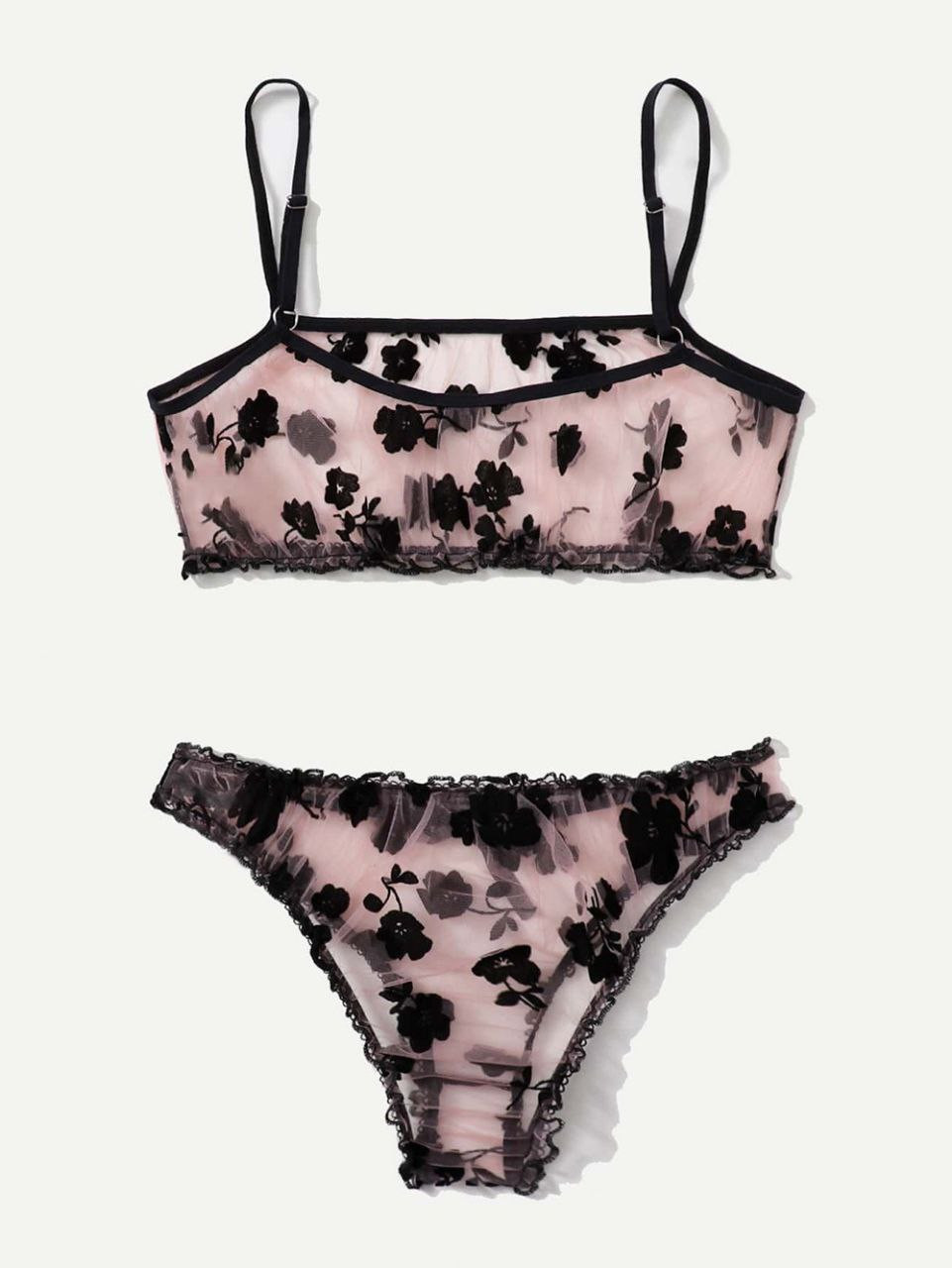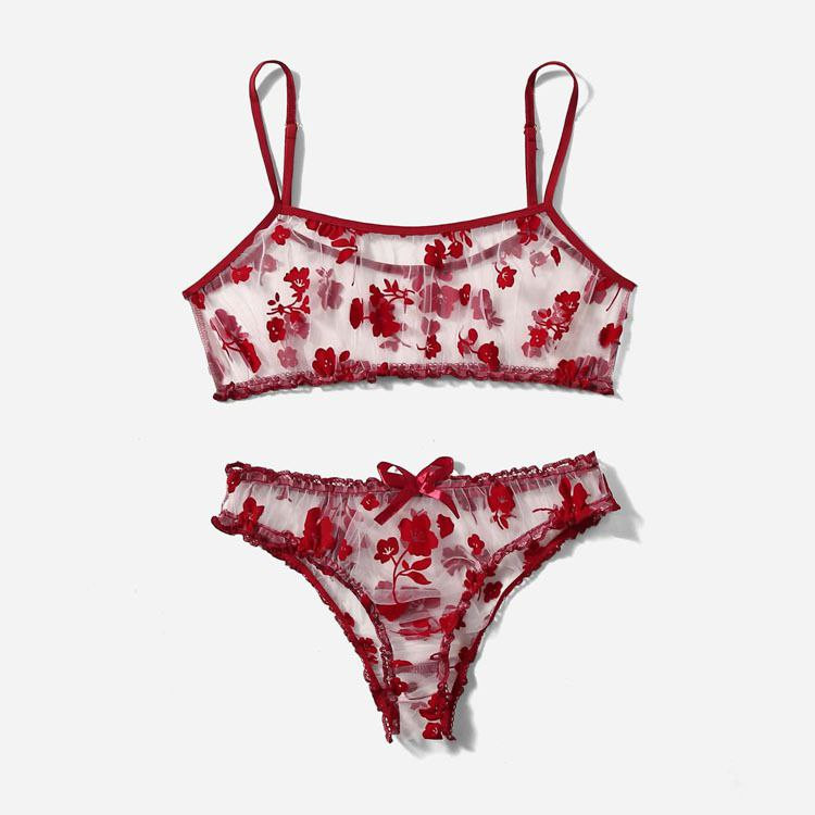 Lingerie sexy Été nouvel ensemble de lingerie sexy transparent floqué maille multicolore tentante pour les femmes