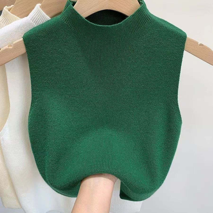 Vêtements d'intérieur d'été sexy pour femmes, couleur unie, haut court sans manches, demi-col roulé, chemise à bascule, gilet