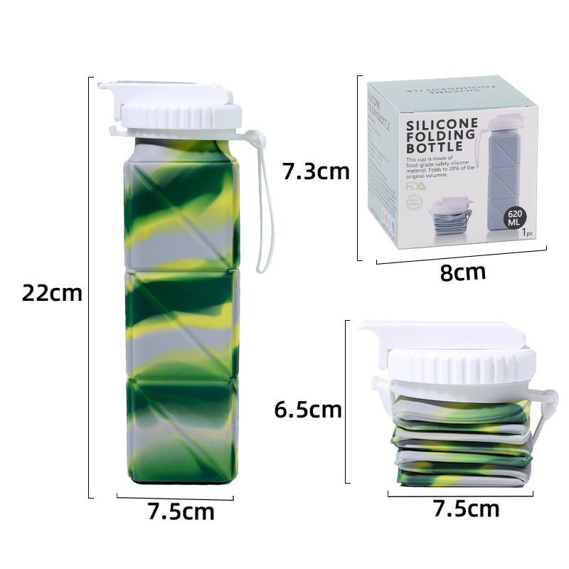 Tasse à eau portable rétractable de qualité alimentaire pliante en silicone carrée 620 ml
