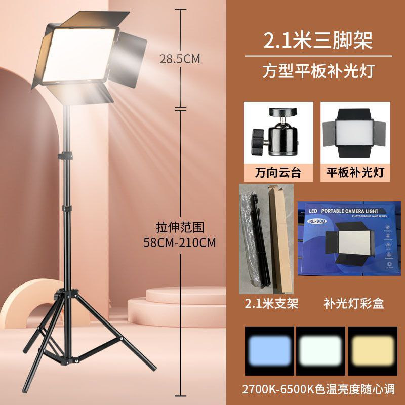 Lumière plate carrée à 4 feuilles + trepied de 2m1 de remplissage LED de 10 pouces, beauté, diffusion en direct, lumière de remplissage, équipement de photographie, éclairage vidéo