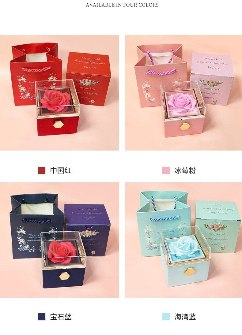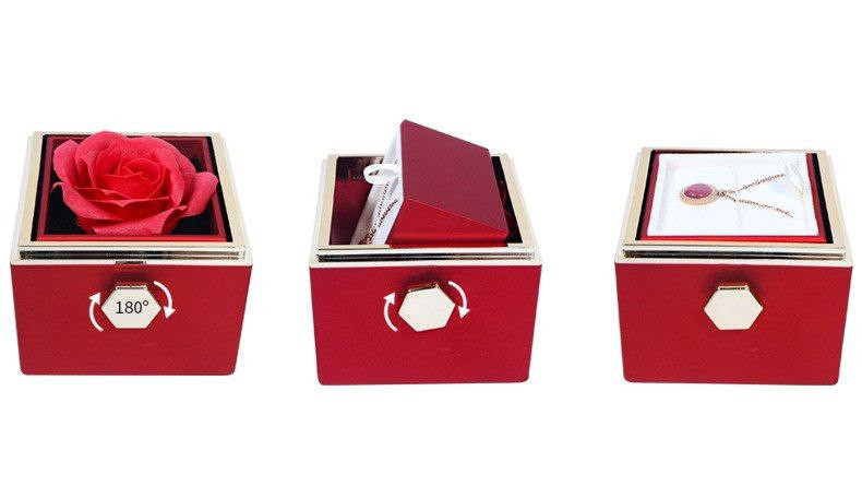 Boîte-cadeau rotative créative de fleur éternelle de la Saint-Valentin boîte à bijoux rose boîte à bagues boîte à collier boîte d'emballage de bijoux