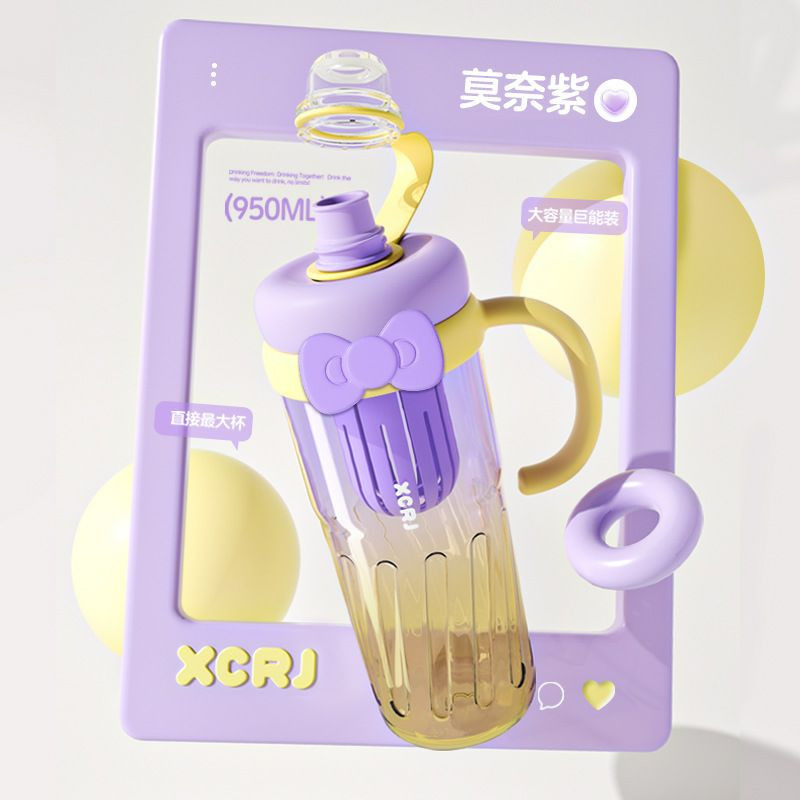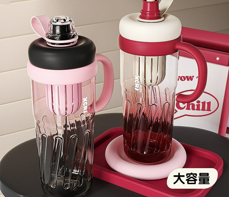 Tasse en plastique, bouteille d'eau, gourde de grande capacité de paille pour les étudiants portable à haute température résistant à l'eau