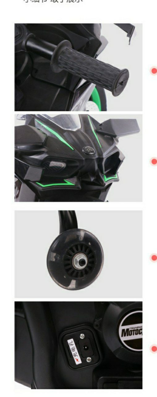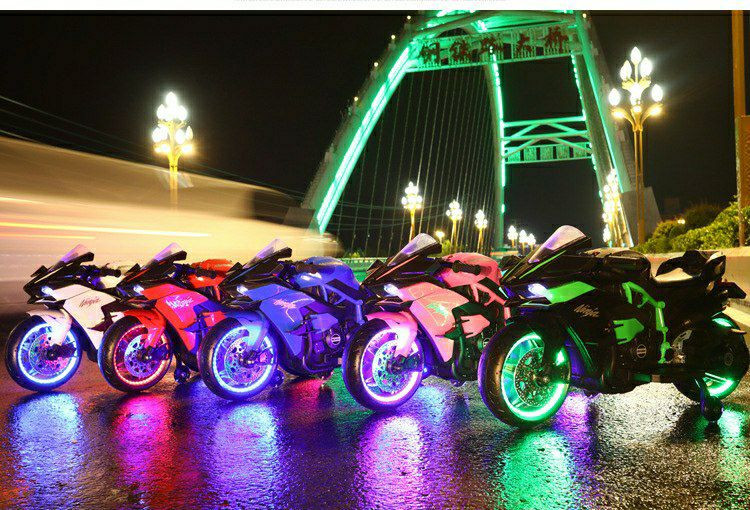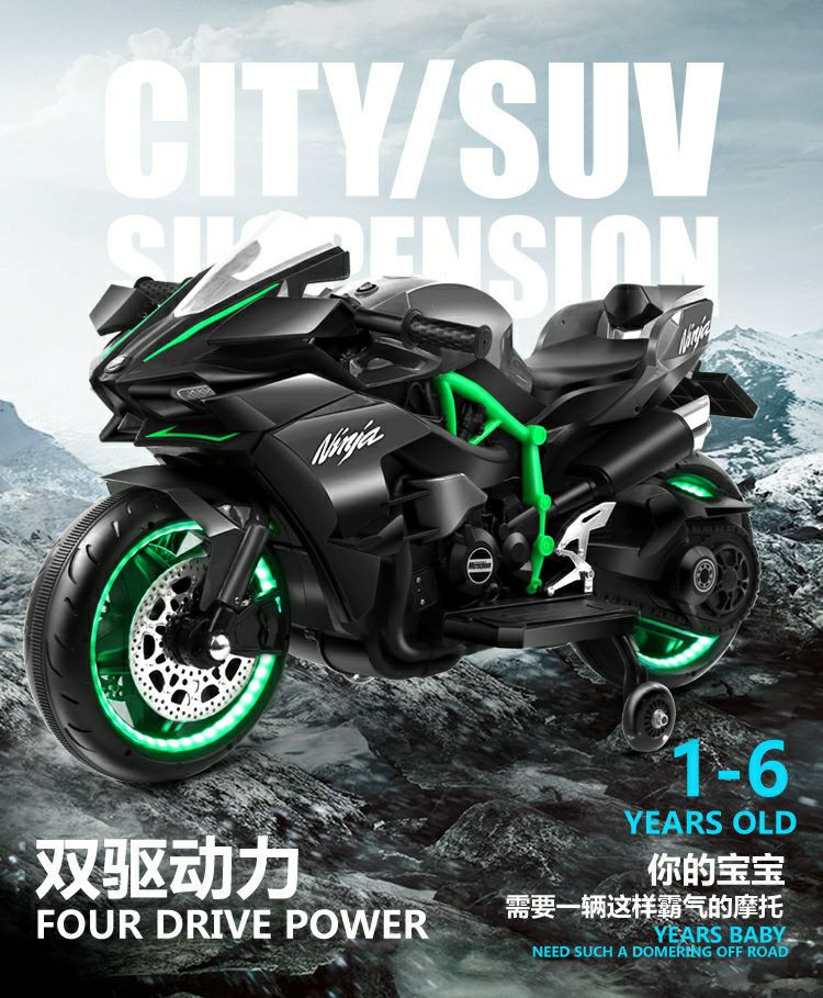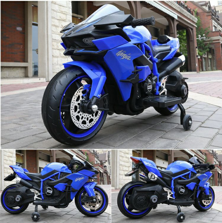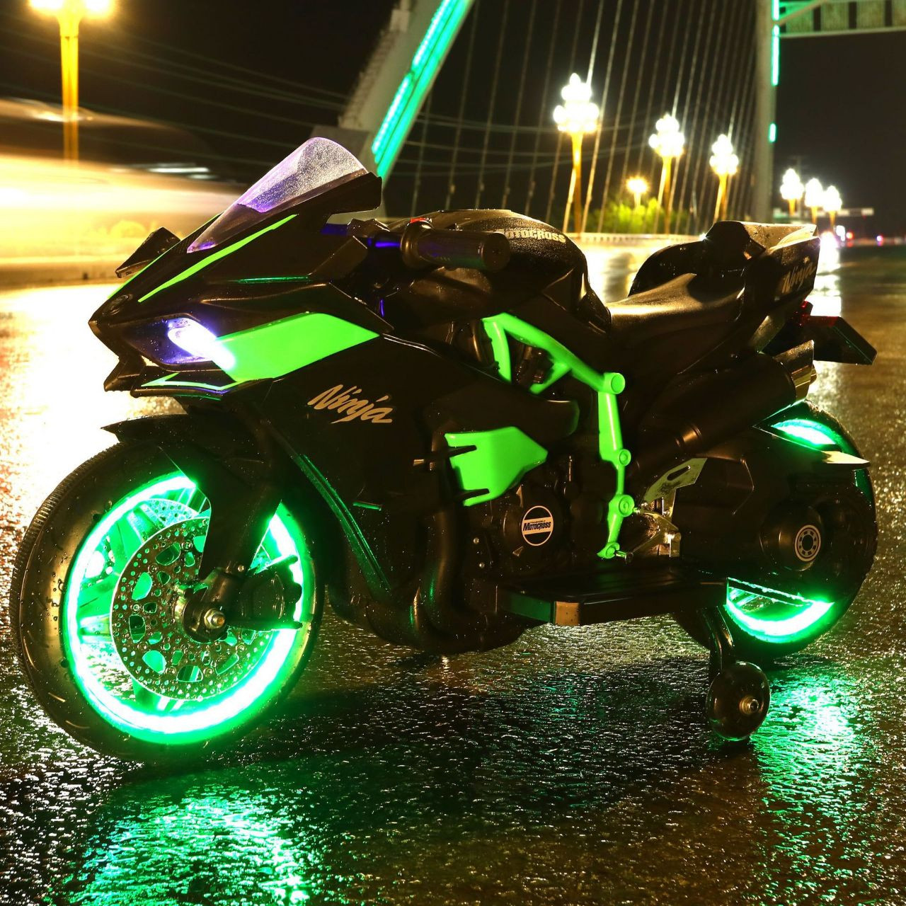 Moto électrique rechargeable à deux roues pour enfants, jouet pour enfants de type Kawasaki Ninja H2, un modèle réduit inspiré de la célèbre moto hypersportive. Une batterie de moto à deux roues électrique pour enfants