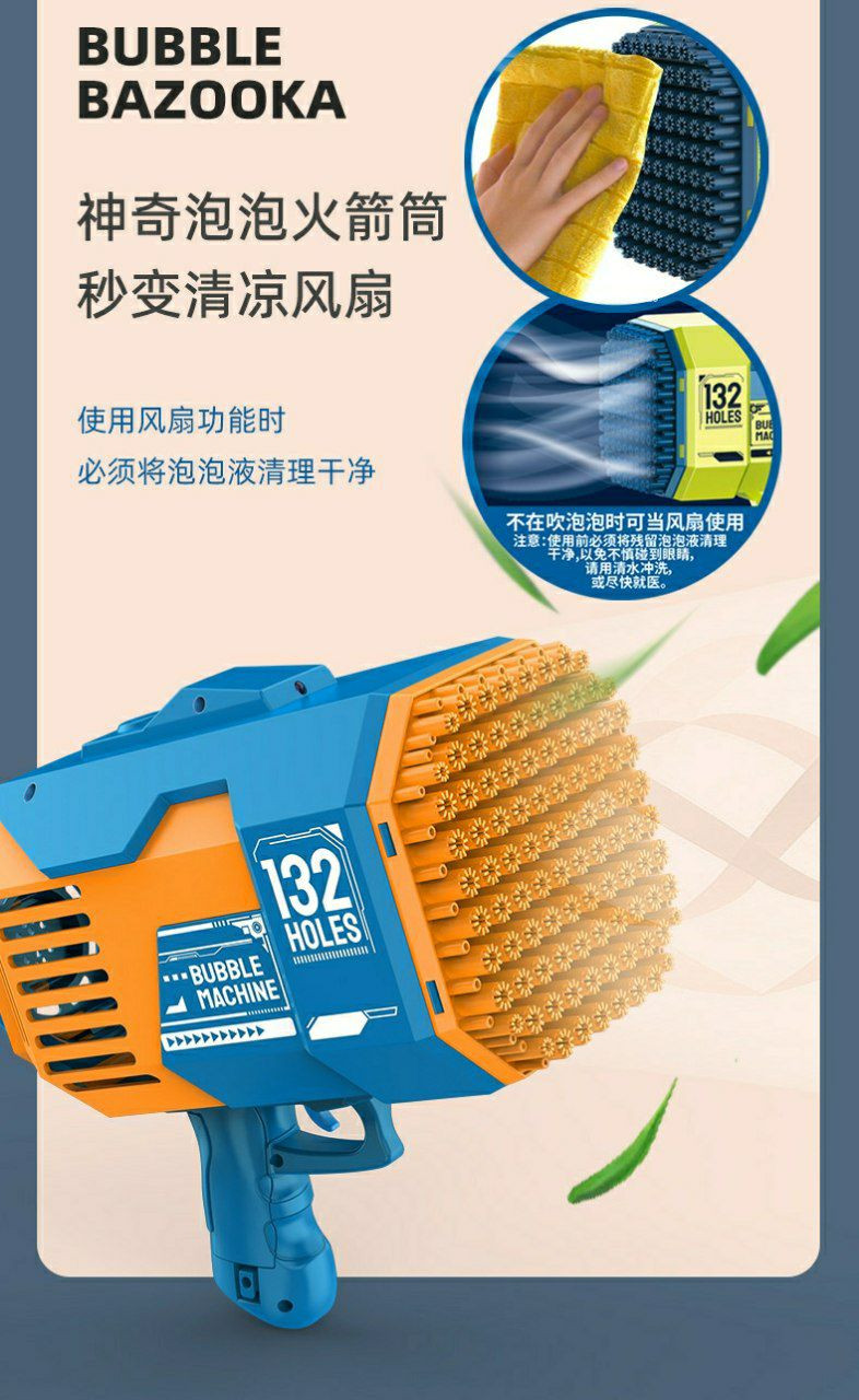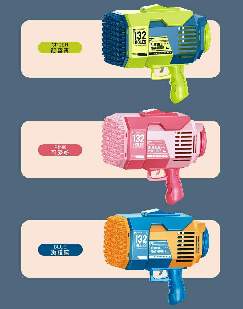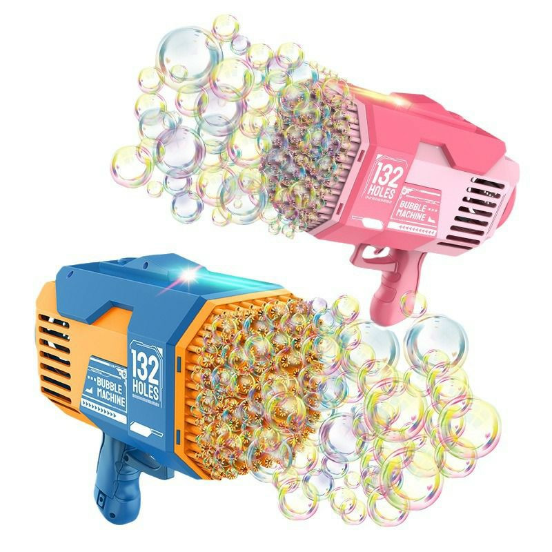 Pistolet a bulles de savon, spécifiquement un modèle avec 132 trous, machine à bulles à chaud à Toys pour enfants entièrement automatique Bazooka adaptes pour animer les fêtes, les anniversaires ou les activités en extérieur.