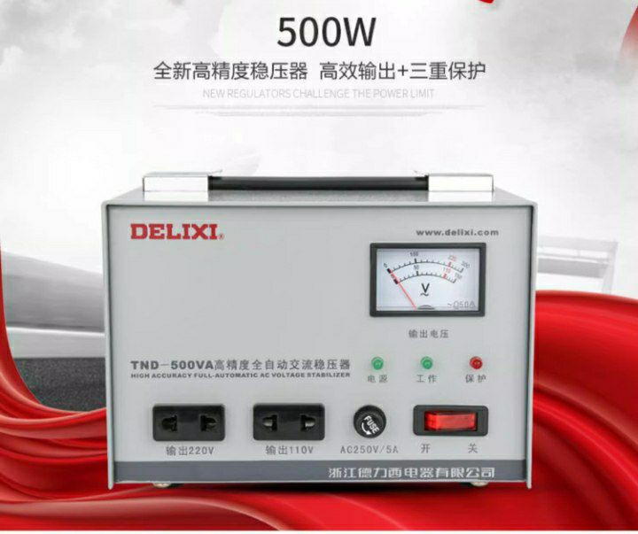 Un stabilisateur de tension CA entièrement automatique de haute précision Delixi TND-500VA. Régulateur de tension de l'ordinateur de marque: Delixi 220V entièrement automatique TND-500W Home ordinateur dédié TV Alide Alimentation