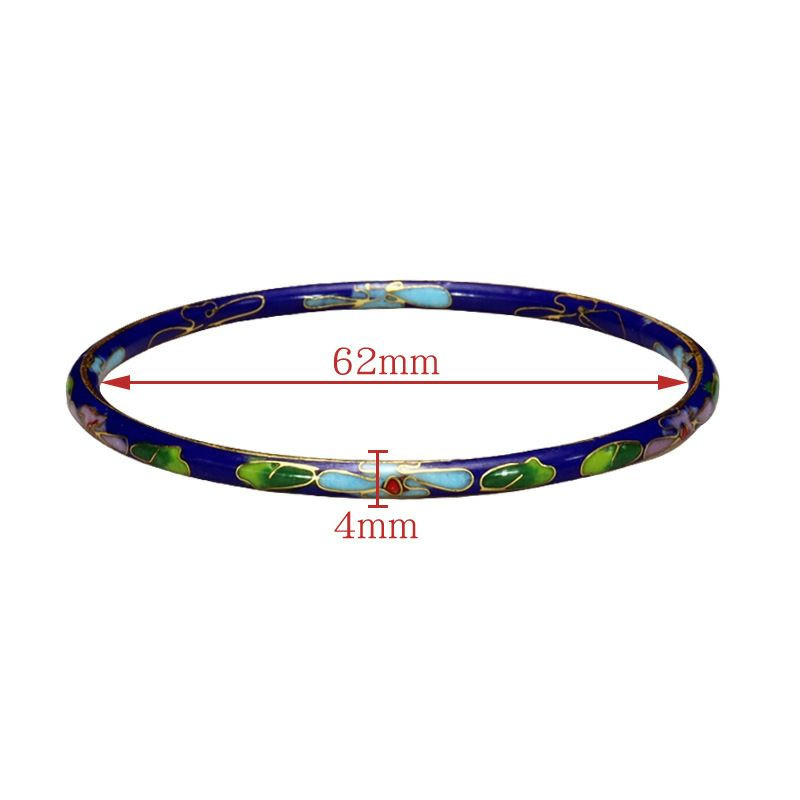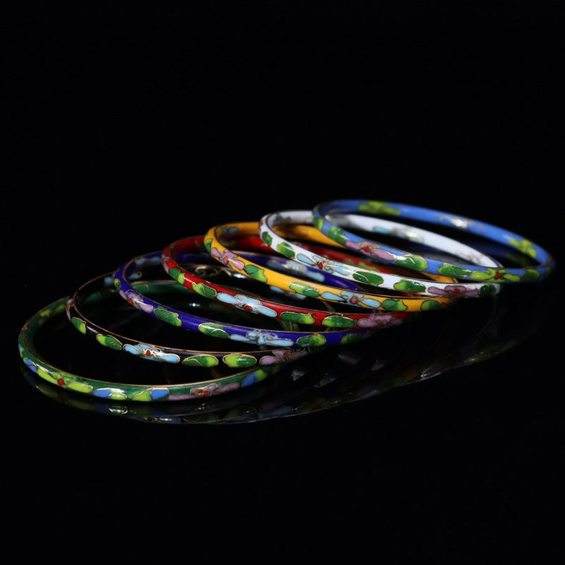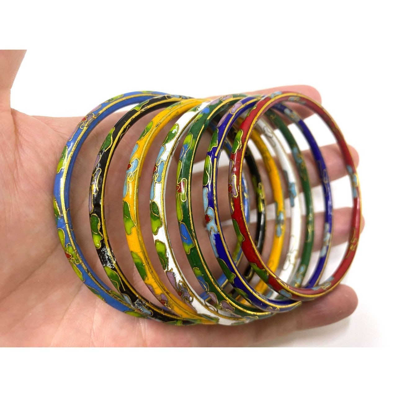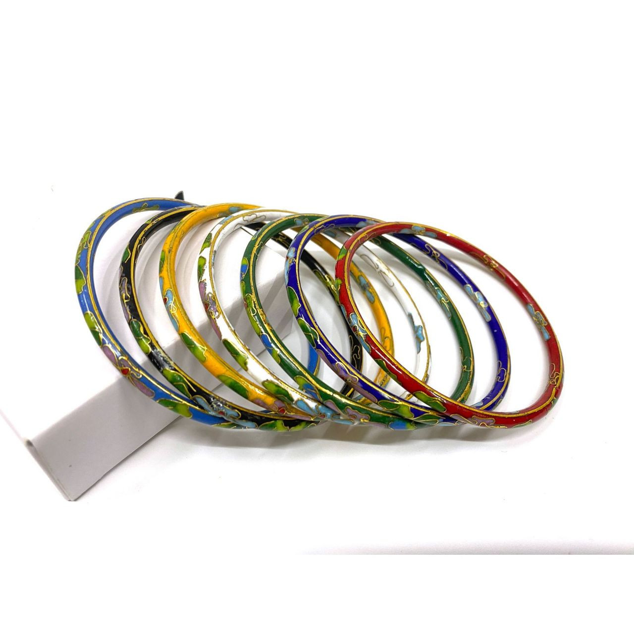 Lot de 7 Bracelets floraux fins chinois cloisonnés, bijoux de style ethnique en émail fait à la main, manchette creuse, (4 pouces/62 mm de diamètre)