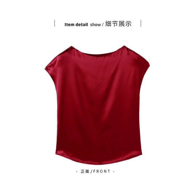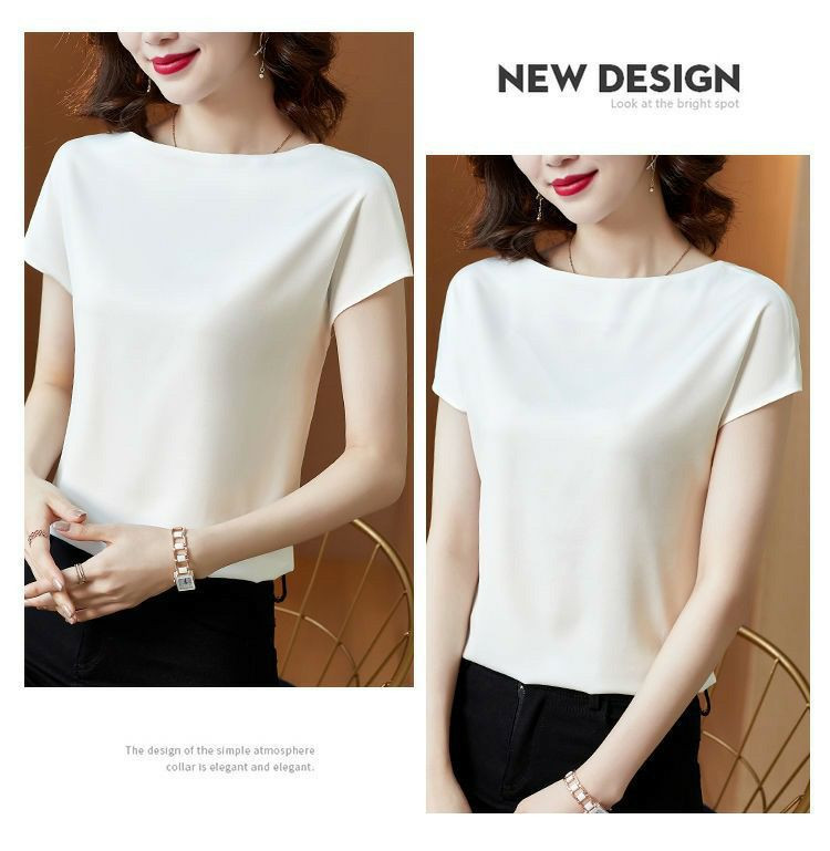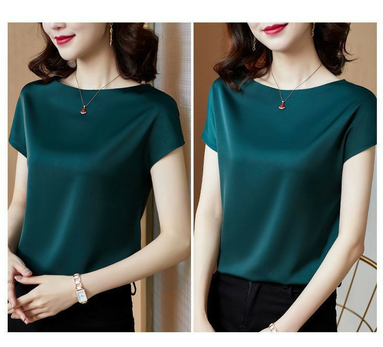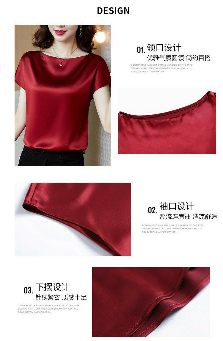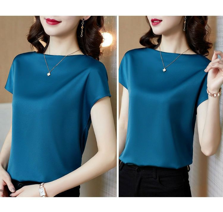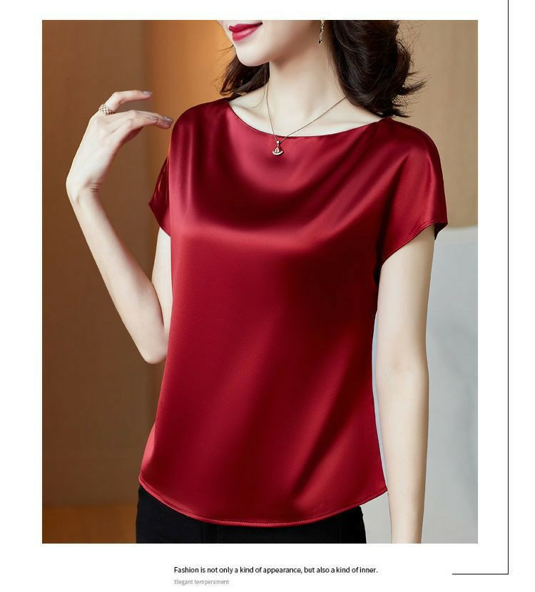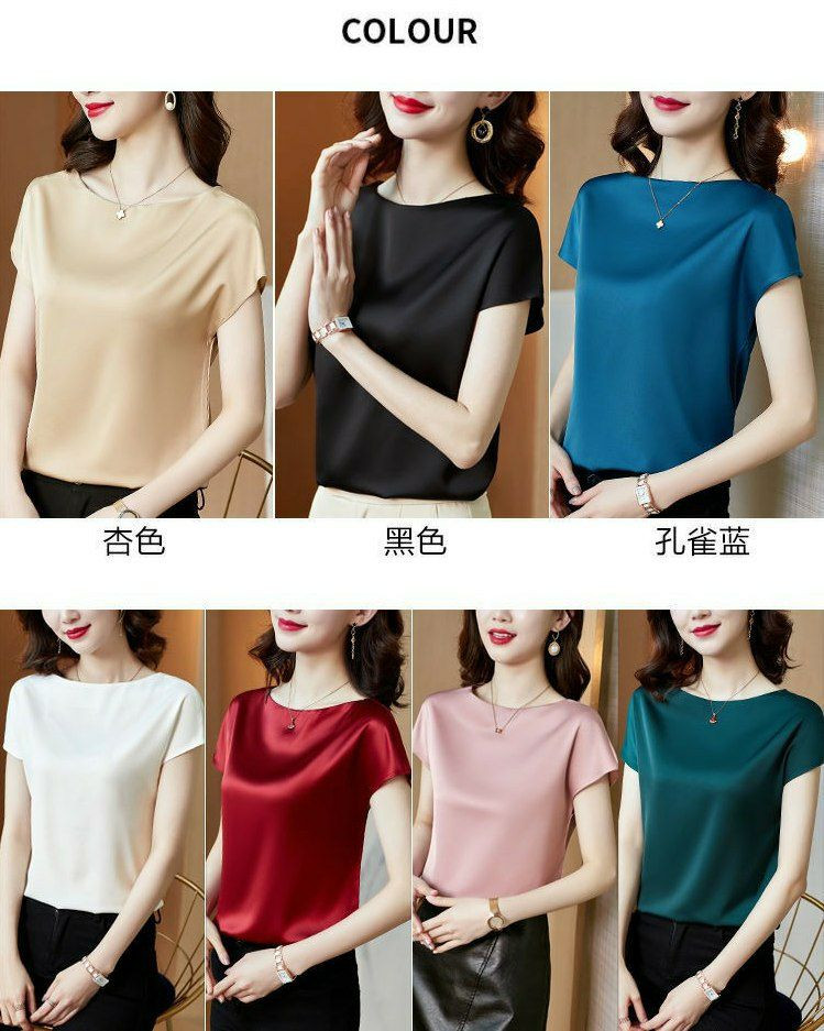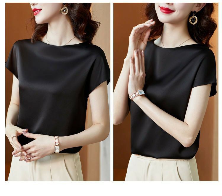 Chemisier en Satin à Manches Courtes et Col Rond des hauts élégants à la mode