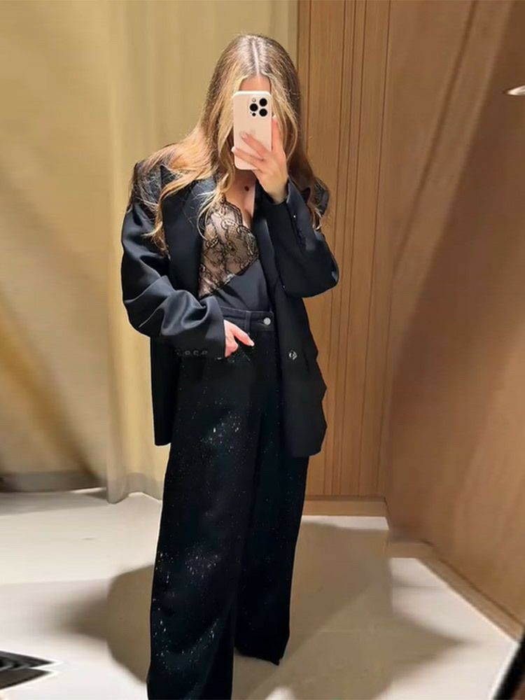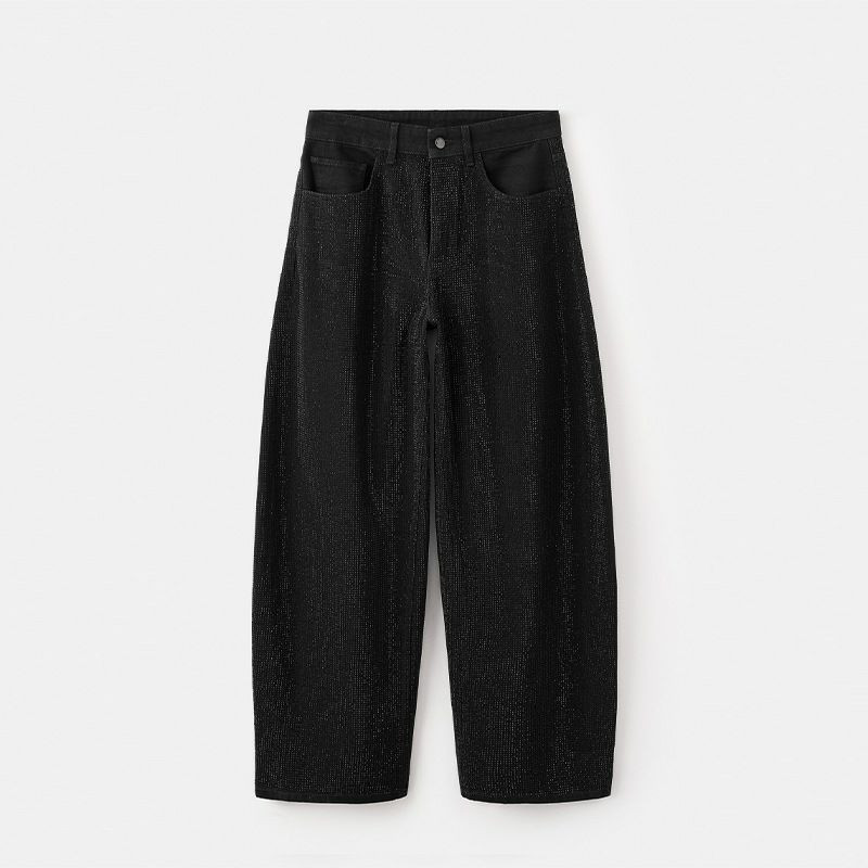 Nouveau pantalon jean ballon large noir scintillant avec des paillettes tendance de qualité porté souvent avec un blazer noir pour femmes, pour personnalité à la mode polyvalent
