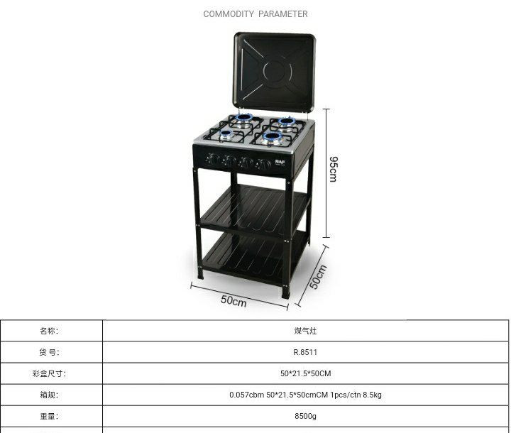 Cuisinière à gaz RAF R.8512 pour la cuisine domestique.