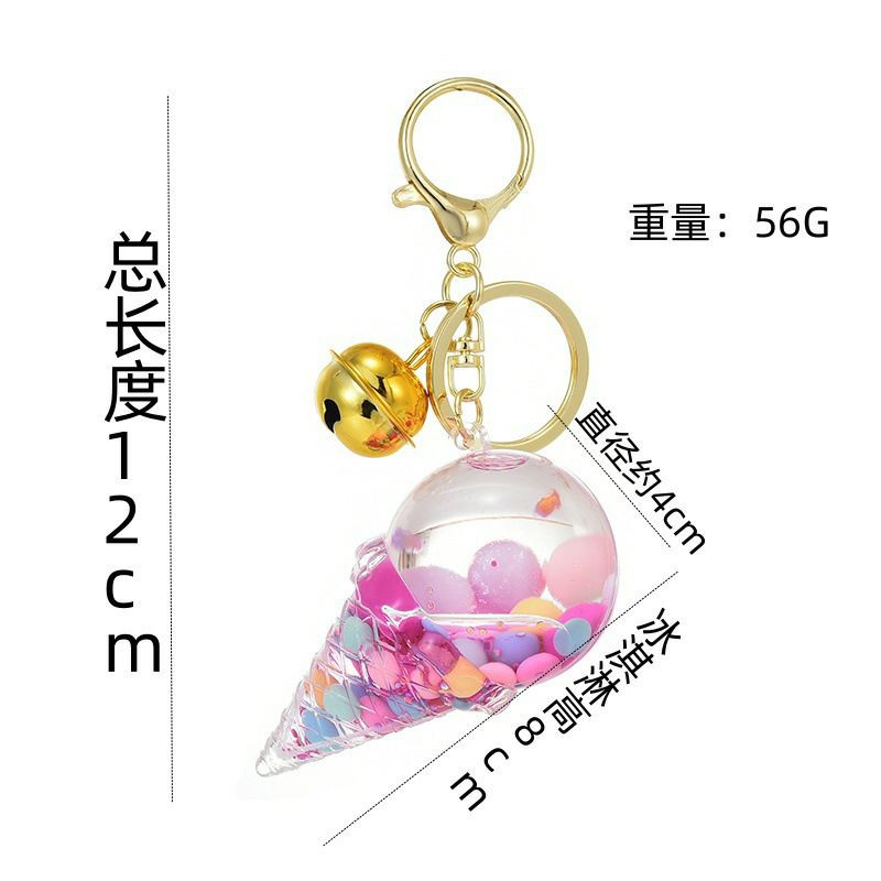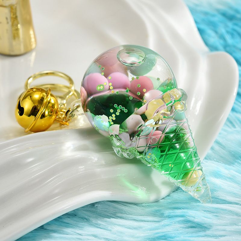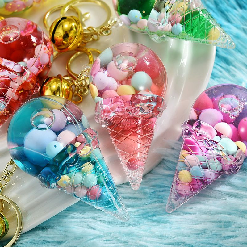 Porte-clés fantaisie en forme de cornet de glace avec des perles flottantes.
