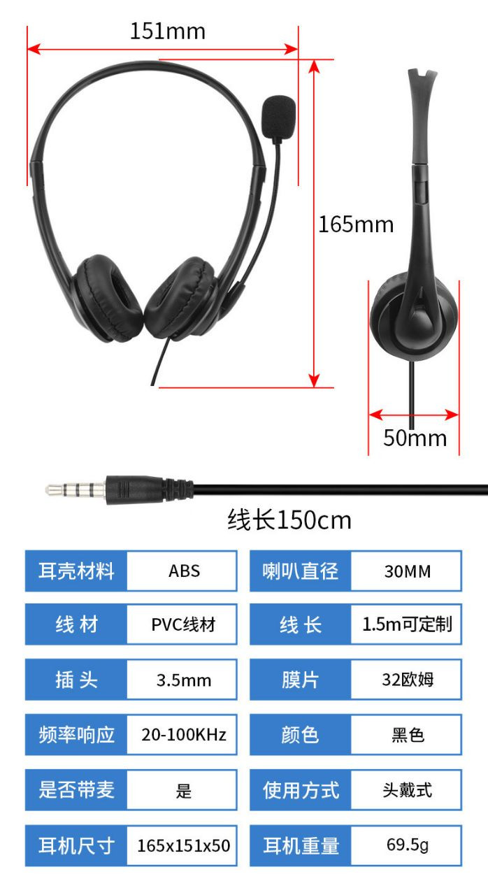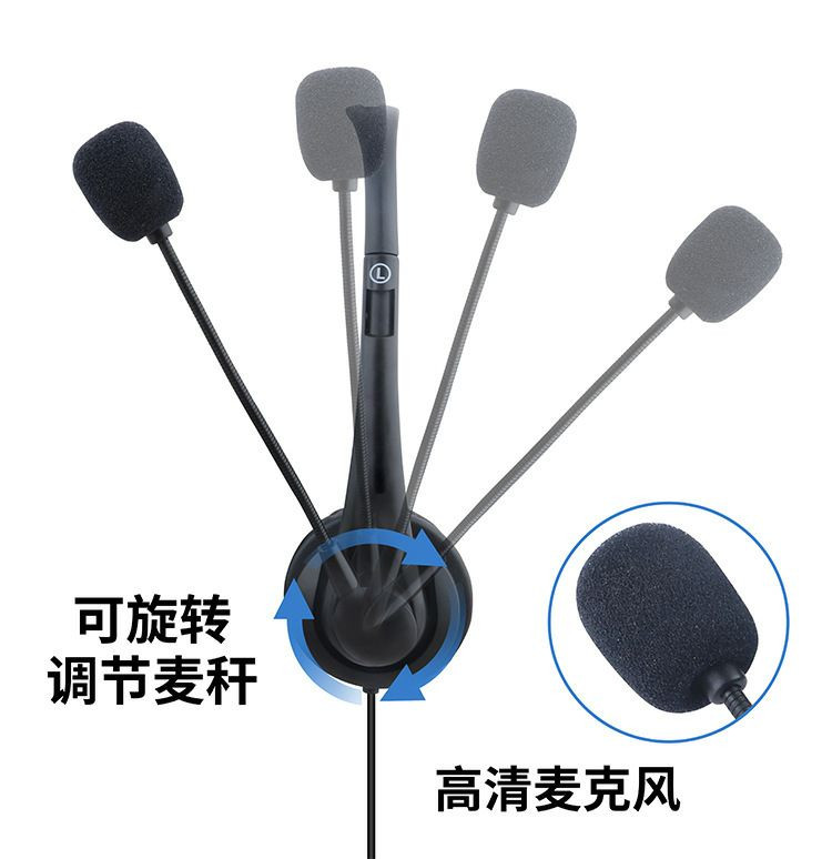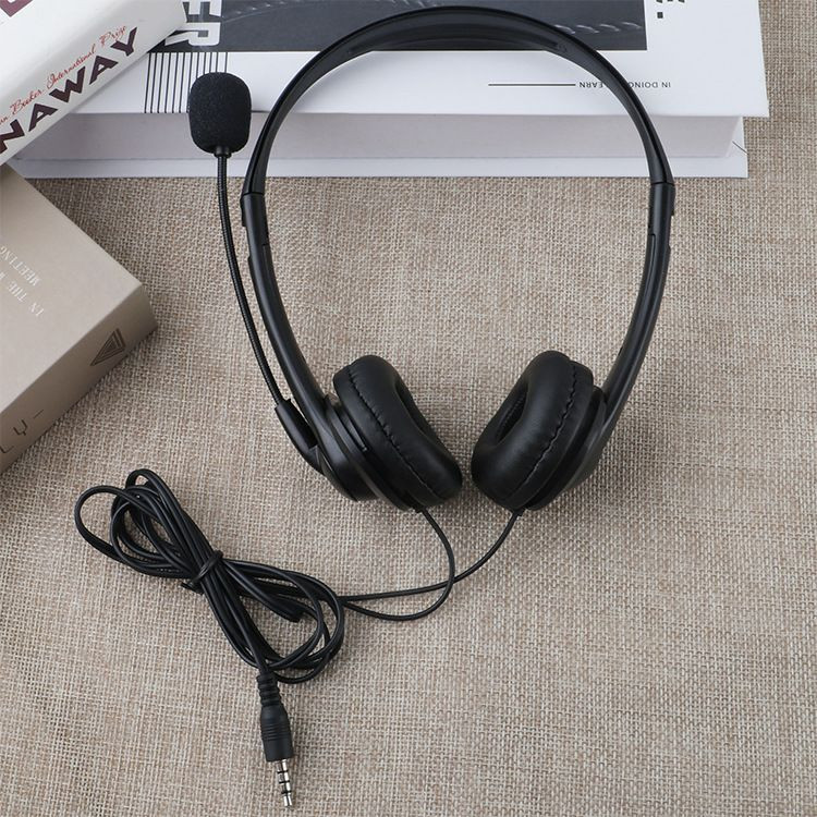 Casque filaire avec microphone intégré, conçu pour une utilisation informatique.