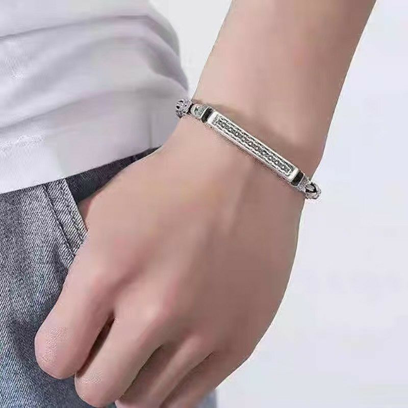 Bracelet pour hommes en argent sterling S925 avec un design de chaîne de maillons carrés et un fermoir décoratif