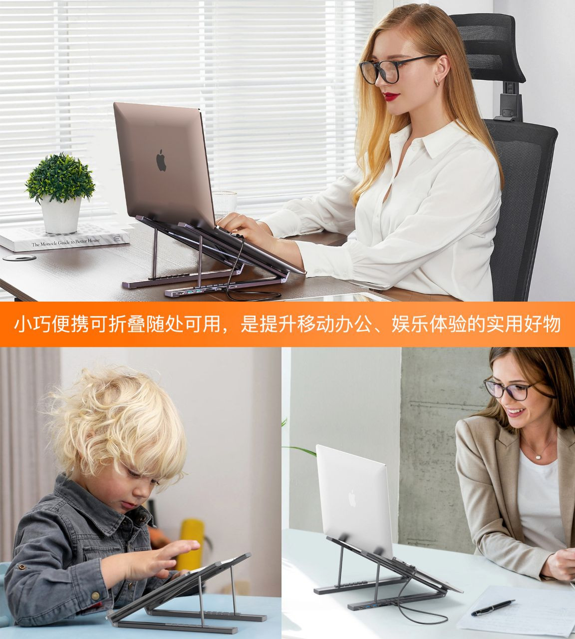 Conception Ergonomique : Structure pliable et réglable en hauteur pour améliorer la posture et optimiser l'angle de vue.