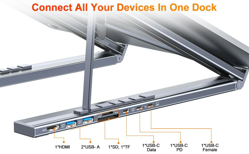 Fonctionnalité 8-en-1 : Comprend des ports HDMI 4K, USB-A 3.0, et des lecteurs de carte SD/TF.
