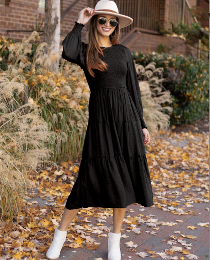 Automne et hiver nouveaux vêtements pour femmes souhaitent rétro français col rond manches lanterne nouvelle robe