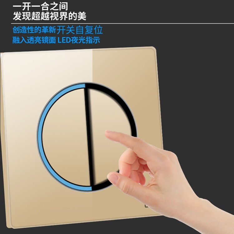 ComOne: Interrupteur électrique International TCL type 86 doré et avec du verre trempé - Interrupteur panneau de luxe pour lumière de maison